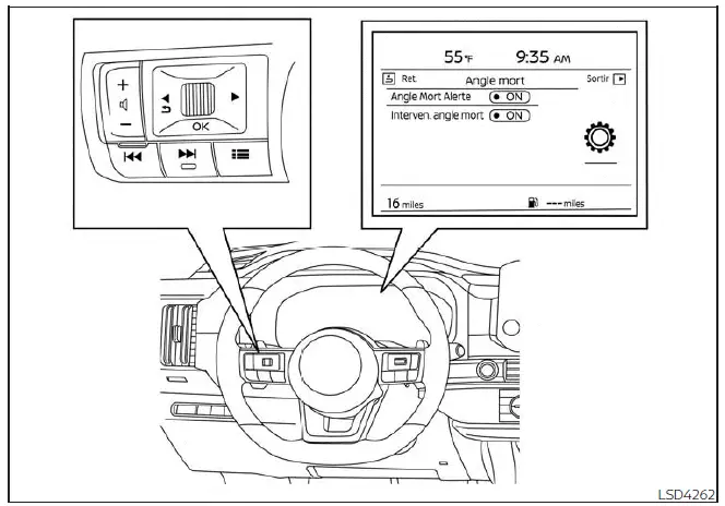 Le système d'avertissement sur angle mort fonctionne lorsque la vitesse est supérieure à 32 km/h (20 mi/h) environ.