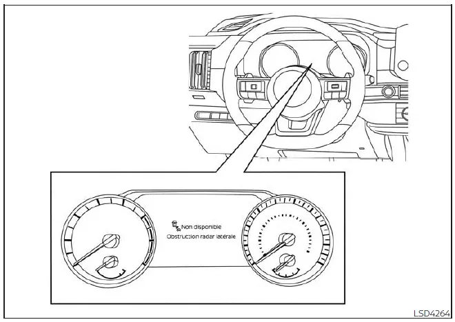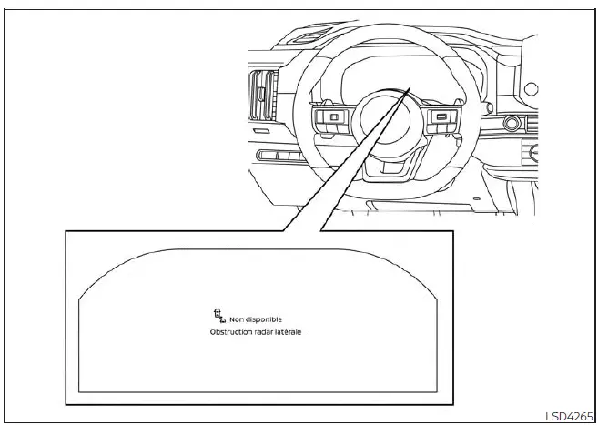 Lorsqu'une obstruction du radar est détectée, le système est automatiquement désactivé. Le message d'avertissement " Non disponible Obstruction radar latérale " s'affiche à l'écran multifonction.