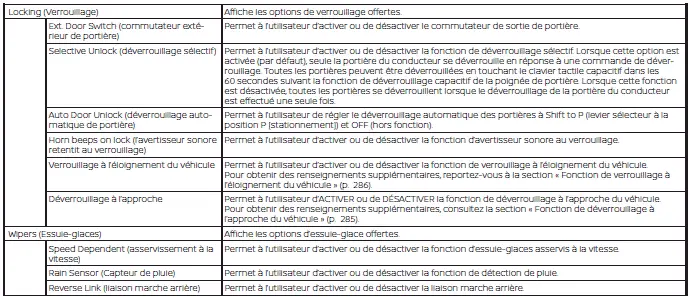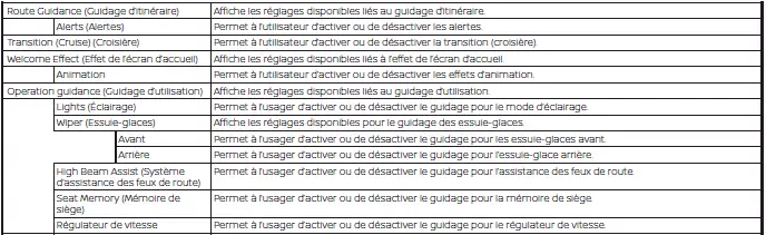 Votre véhicule n'est peut-être pas équipé de certains éléments de menu illustrés ci-dessous.