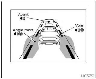 Ce message peut s'afficher lorsque le système ProPILOT Assist, le système d'intervention sur l'angle mort intelligent (I-BSI) ou le système d'intervention de changement de voie intelligent (I-LI) est activé.