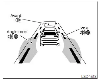 Si le conducteur n'actionne pas le volant après l'affichage de l'avertissement, une alarme sonore retentit et l'avertissement et le témoin d'avertissement clignotent, ensuite de quoi le frein est actionné pour demander au conducteur de reprendre le contrôle du véhicule.